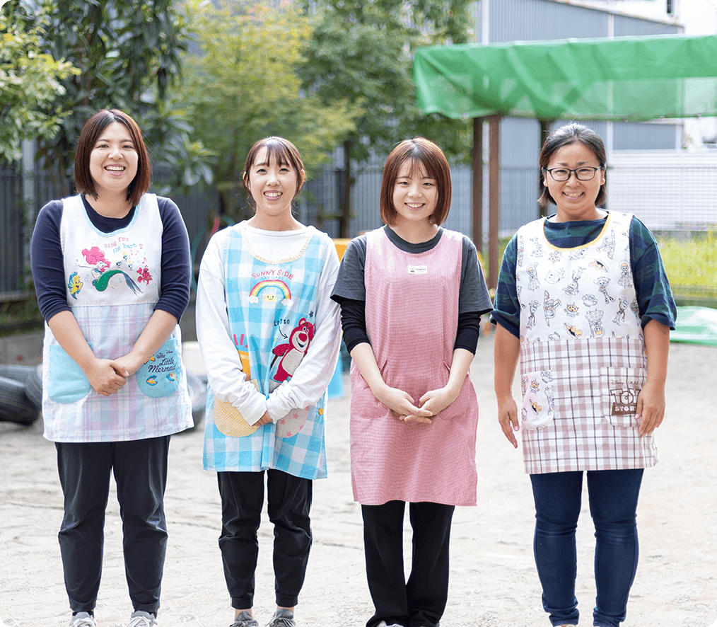 働きやすさのための環境や制度。 保育士一人ひとりが生き生きと 笑顔で働きつづけられる 職場づくり目指してます。
