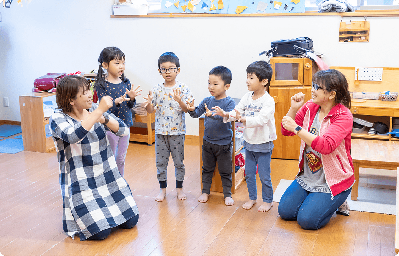 ⼀⼈ひとりの思いを⼤切にした保育を⾏う。