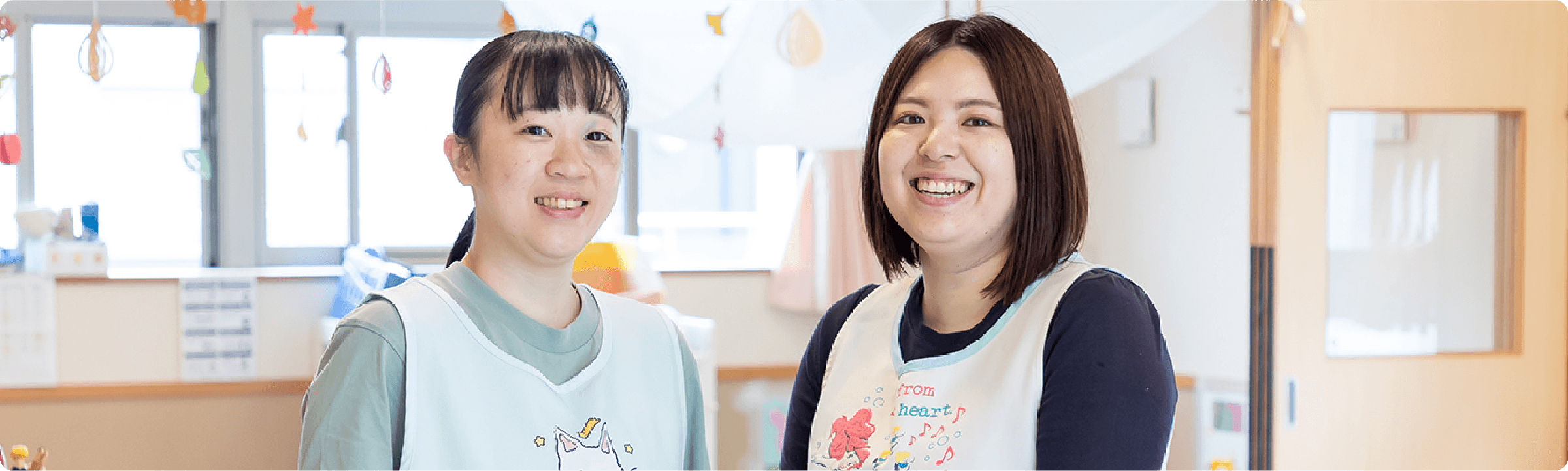 すこやか福祉会では、職員一人ひとりが仕事と生活を両立しながら、 着実に成長できる職場環境を整えています。 また、職員の働きやすい環境づくりも大切にしています。